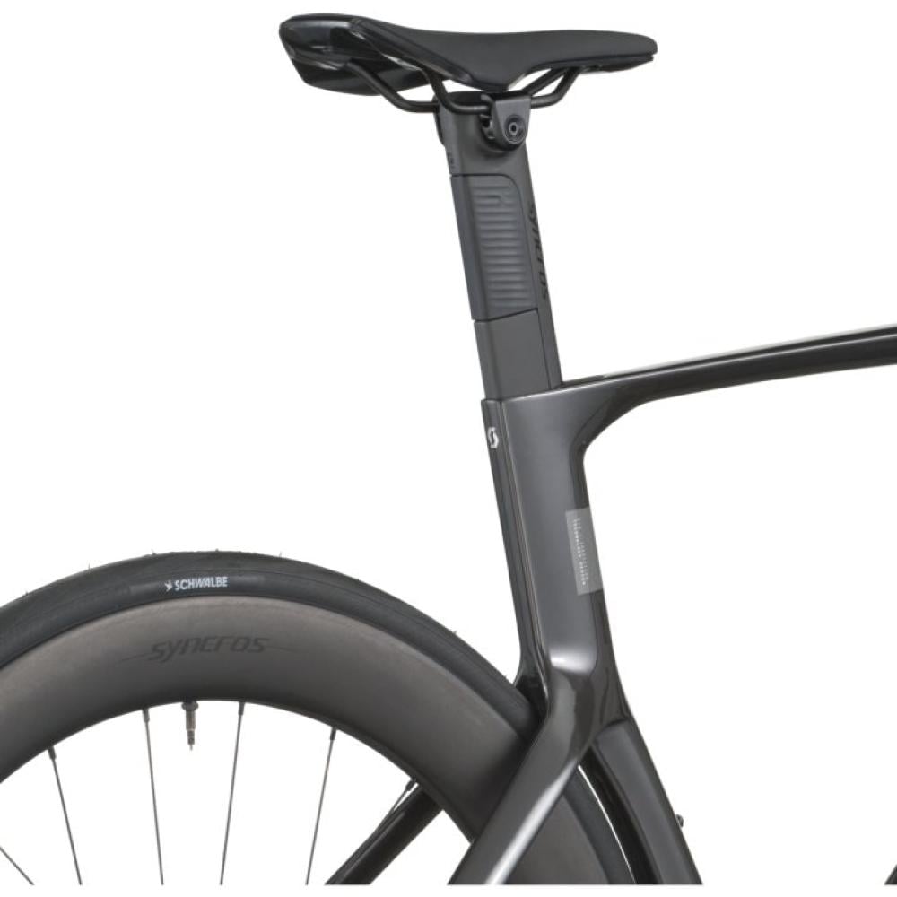 The patented Syncros Duncan SL Aero CFT seatpost is a key feature of the bike. It not only improves riding comfort on uneven roads, but also enables efficient power transmission on light gravel or cobblestones. The two-part structure with a load-bearing front carbon section ensures that the seat post flexes in a controlled manner when subjected to shocks, effectively absorbing impacts.